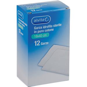 Alvita Garza Idrofila Sterile 18x40 cm - 12 Pezzi in Puro Cotone per Medicazione