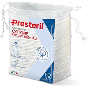 CORMAN SpA Quadrotti Cotone Idrofilo Presteril 8x7,5 cm - 50 Pezzi, Resistenti e Super Assorbenti
