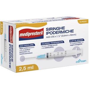 CORMAN SpA SIRINGA IPODERMICA MEDIPRESTERIL AGO 23 GAUGE 1 1/4 0,6X30MM 2,5 ML 10 PEZZI