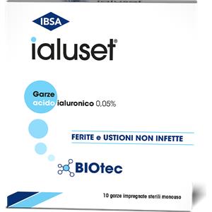 IBSA Farmaceutici Ialuset garze con acido ialuronico per ferite e ustioni non infette 10 x 10 cm 10 pezzi