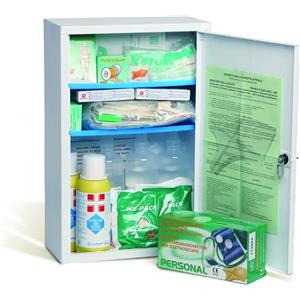 PVS Armadietto Pronto Soccorso Bianco - 3 Vani, 2 Ripiani, Chiusura a Scatto, Fino a 2 Persone