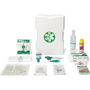 Adatto-M Valigia di Pronto Soccorso con Pacco Medicazione per 2 Lavoratori, Supporto a Muro in Plastica Resistente, Dimensioni 209x97x309 mm