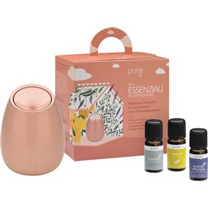 HP ITALIA Srl Purae Kit Aromaterapico con Diffusore a Ultrasuoni Bloom Rosa e Oli Essenziali Bio di Limone, Eucalipto e Lavanda