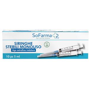 SOFARMA Siringa Sterile Monouso 5ml con Ago Extrafine Indolore - 10 Pezzi