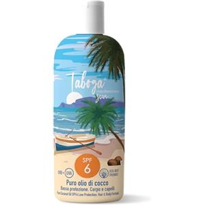 Taboga Puro Olio di Cocco SPF6 200 ml - Olio Solare Multifunzionale per Corpo e Capelli con Betacarotene