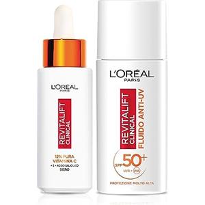 L'Oreal Paris L'Oréal Paris Routine Illuminante e Protettiva, Con Siero 12% Pura Vitamina C e Fluido SPF 50+, Con Acido Salicilico, Revitalift Clinical, 30 ml + 50 ml