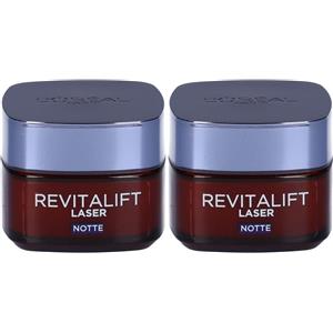 L'Oréal Paris Crema Viso Notte Revitalift Laser X3, Azione Antirughe Anti-Età con Acido Ialuronico e Pro-Xylane, 50 ml 2x50