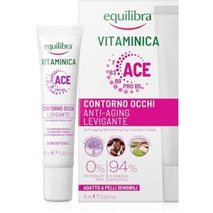 Equilibra Vitaminica Contorno Occhi Levigante 15 ml - Emulsione Idratante con Acido Ialuronico e Caffeina