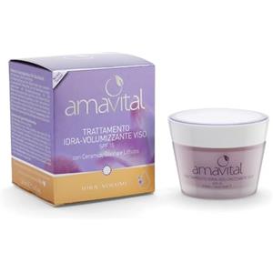Amavital Trattamento Idra-Volumizzante Crema Viso SPF 15 - Idratazione a Tre Livelli con Acido Ialuronico e Ceramidi, 50 ml