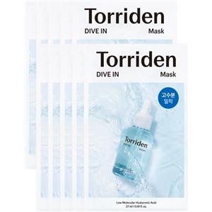 Torriden DIVE-IN Maschera Idratante in Foglio con Acido Ialuronico a Basso Peso Molecolare - 10 Pezzi, 100% Cellulosa per Pelle Sensibile, Vegan e Senza Profumo