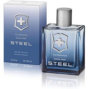 Victorinox Steel - Acqua da toeletta da uomo in spray, 100 ml con note di foglie di viola, frutti rossi e accordo acquatico