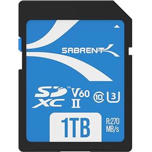 SABRENT Scheda SD 1TB V60 SDXC UHS-II - Memoria U3 con velocità di lettura fino a 270MB/s e scrittura superiore a 60MB/s, ideale per video 8K e 4K