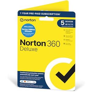 Norton 360 Deluxe + Utilities Ultimate, Antivirus software for 5 Devices and 1-year subscription with automatic renewal, Includes Secure VPN, PC/Mac/iOS/Android - Activation Code by Post