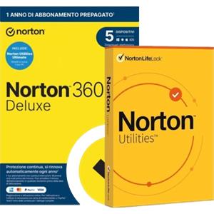 Norton 360 Deluxe con Norton Utilities Ultimate | 5 dispositivi | 1 anno