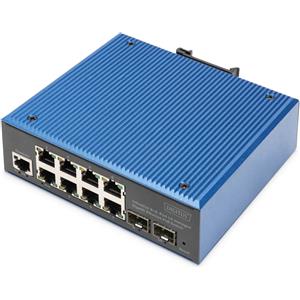 Digitus Switch di rete industriale 10 porte Gigabit Ethernet PoE (8x RJ45 2x SFP) L2 gestito, IP40, montaggio su guida DIN