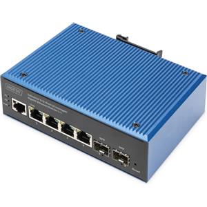 DIGITUS Switch Industriale 6 Porte Gigabit Ethernet PoE Gestito - 4x RJ45 2x SFP - IP40 - Montaggio su Guida DIN