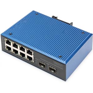 Digitus Switch di rete industriale 10 porte Gigabit Ethernet PoE (8x RJ45 2x SFP) L2 gestito, IP40, montaggio su guida DIN