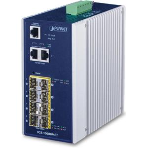 PLANET IGS-10080MFT Switch di Rete Gestito Gigabit Ethernet (10/100/1000) con 2 Porte RJ-45, Capacità di Commutazione 26 Gbit/s, Blu e Bianco