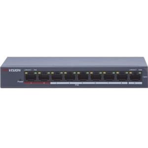 Hikvision DS-3E0109P-E/M Switch di Rete Non Gestito L2 Fast Ethernet 10/100 con 9 Porte RJ-45, 8 Porte PoE (802.3af/at) e 1 Porta Uplink, Design Metallico Senza Ventola