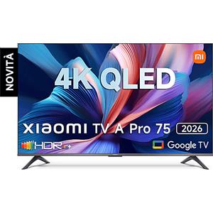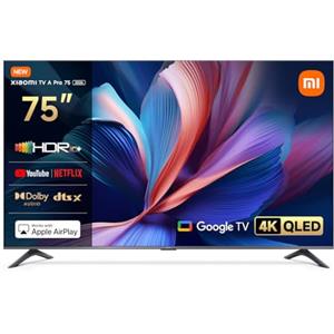 XIAOMI TV A Pro 75, 75 pollici (190 cm), 4K UHD QLED, Smart TV, Google TV, Triple Tuner DVB-C/S/S2/T/T2,HDR10+, Modalità Game Boost 120Hz, MEMC, Controllo Vocale, 2GB+8GB, Apple Airplay & Google Cast