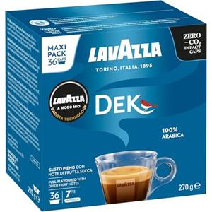 Lavazza A Modo Mio Dek Cremoso - 36 Capsule Decaffeinate, Cremoso e Tostatura Media in Tè, Caffè, Solubili
