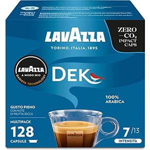 Lavazza A Modo Mio Dek Cremoso, 128 Capsule Caffè, per un Espresso Decaffeinato con Note di Mandorle e Canditi, 100% Arabica, Intensità 7/13, Tostatura Media, 8 Confezioni x 16 Capsule