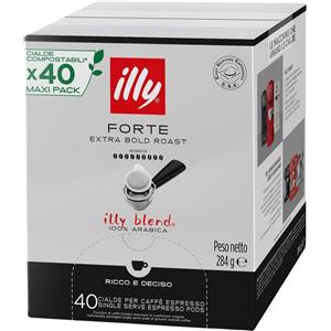 Illy Caffè Forte - 200 Cialde E.S.E. 44mm, Tostatura Scura, 100% Arabica con Note di Pan Tostato e Cioccolato Fondente in Tè, Caffè, Solubili