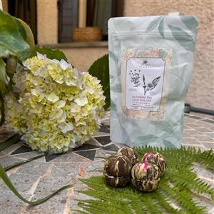 Tea Soul Blooming Tea Ai Fiori Di Gonfrena Happy Rising - Tè Bianco Mao Feng con Fiori di Gonfrena, 50g