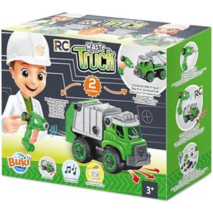 Buki Camion di Spazzatura Radiocomandato Verde 9021 - Da Assemblare con Avvitatrice e Due Modelli