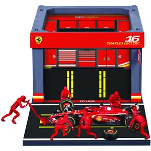 Burago Ferrari SF-24#16 Leclerc - Playset con Diorama in Scala 1:43 e 6 Meccanici, Replica Dettagliata con Licenza Ufficiale Ferrari, Età Consigliata 3 Anni
