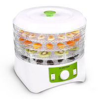 I più diffusi essiccatori per uso domestico funzionano invece grazie a una resistenza che genera calore a bassa temperatura e ad una ventola che distribuisce il calore essiccando i cibi disposti su vassoi solitamente forati. Nel caso degli essiccatori domestici troverete di norma una sola ventola, che dovrebbe essere sufficientemente grande e proporzionata alla portata e al numero dei vassoi impiegati.