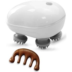 OVADA Massaggiatore elettrico per la testa con lampada termica a infrarossi + pettine per massaggi in legno, asciutto e bagnato (IPX7), durata della batteria 10 minuti (ricaricabile - cavo di ricarica