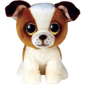 TY Peluche Beanie Boos Muddles Cane 28 cm Marrone e Bianco con Macchie - Occhi Azzurri Grandi e Glitter