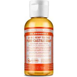 Dr. Bronner's Sapone Liquido Tea Tree 60 ml - 18 in 1, Pulisce e Idrata per Viso, Corpo e Capelli