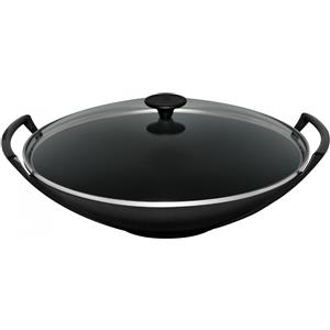 LE CREUSET Wok in Ghisa Vetrificata con Coperchio in Vetro, Diametro 36 cm, 4.5 L, Nero Matt