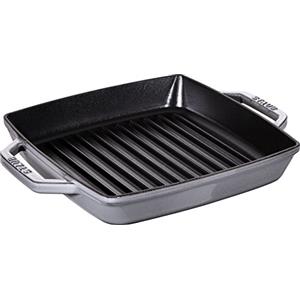 Staub Bistecchiera Quadrata 23 cm in Ghisa Grigio Grafite con Due Manici e Scanalature per Grigliate Perfette