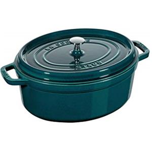 STAUB Cocotte Ovale in Ghisa Smaltata Blu La Mer, 33 cm, Capacità 6,7 Litri - Ideale per Cottura Lenta di Carni e Verdure
