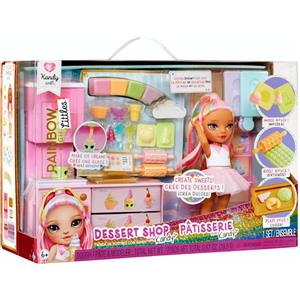 Rainbow High Littles Dessert Shop con Kandy - Playset Creativo con Bambola da 14-15 cm, Impasti Colorati e Dispenser di Gelato per Bambini dai 4 Anni