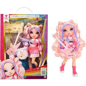 Rainbow High - Jr High Rockband Fashion Doll Bella, Bambola di 23 cm con Basso Rosa, Personalizzabile con Adesivi, Snodata, Età 4