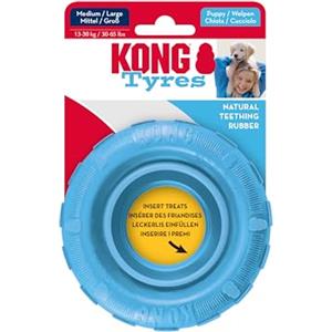 KONG Puppy Tires - Giocattolo da Masticare in Gomma Naturale per Cuccioli di Taglia Media/Grande, Riempibile con Biscotti e Snack
