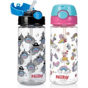 Nuby Borraccia in Tritan 530ml con Cannuccia Morbida in Silicone e Apertura a Scatto, Ideale per Bambini 3 Anni