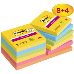 Post-it Super Sticky Foglietti, Collezione Carnival, 76 x 76 mm, Confezione da 6 blocchetti, 90 Fogli per blocchetto, Colori vivaci: Giallo Sole, Blu Paradiso, Verde Lime, Rosa Power, Arancio Acceso in Scuola e Cancelleria