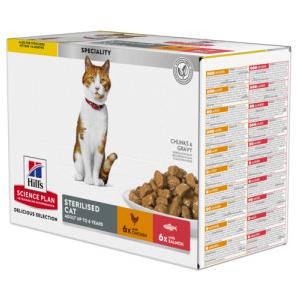 Hill's Science Plan Adult Sterilised - Alimento umido per gatti sterilizzati con Pollo e Salmone, 12 x 85 g