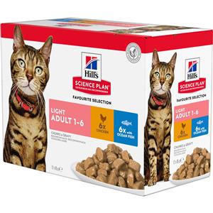 Hill's Science Plan Adult Light - Cibo Umido per Gatti Adulti con Pollo e Pesce, 12 Bustine da 85 g