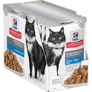 Hill's Science Plan Mature Adult 7 Alimento per Gatti Anziani con Pesce Oceanico e Pollo - Multipack da 12 x 85 g