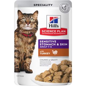 Hill's Science Plan Adult Cat Sensitive Stomach & Skin - Alimento umido con Tacchino per gatti adulti, 85 g