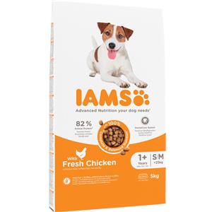 IAMS Cibo Secco Completo per Cani Adulti Piccola e Media Taglia con Pollo - 5 kg, 82% Proteine Animali, Senza Frumento
