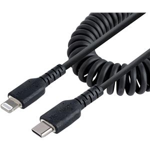 StarTech.com Cavo USB-C a Lightning 50 cm Certificato MFi, Cavetto iPhone Spiralato in Fibra Aramidica con Rivestimento TPE, Cavo Caricatore Nero