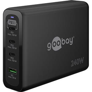 Goobay Caricabatterie Rapido Multiporta USB-C PD GaN 240W - 3 Porte USB-C e 1 Porta USB-A, Nero