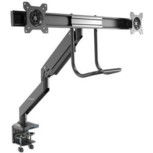 Techly 301740 Supporto da Scrivania per 2 Monitor 13-27'' con Morsetto a C, Altezza Regolabile, Diametro 48 mm, Nero